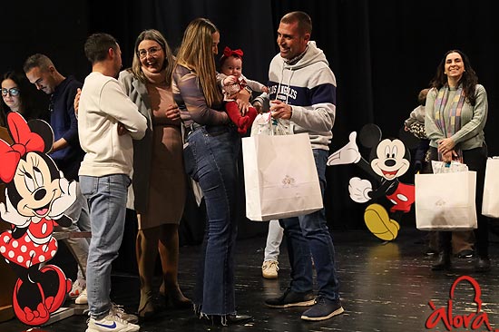 En la tarde de hoy, 9 de enero, se ha celebrado en el Teatro Tomás Salas un emotivo y entrañable acto para dar la bienvenida a los 109 bebés nacidos en el año 2025. La concejala de Infancia, Delia Macías acompañada de concejales y concejalas del Equipo de Gobierno han hecho entrega de un obsequio (con artículos para el bebé) a las familias asistentes y ha felicitado a los padres, madres y familiares por el nacimiento de su hijo/a. El lote de productos ha sido adquirido en tiendas locales.
